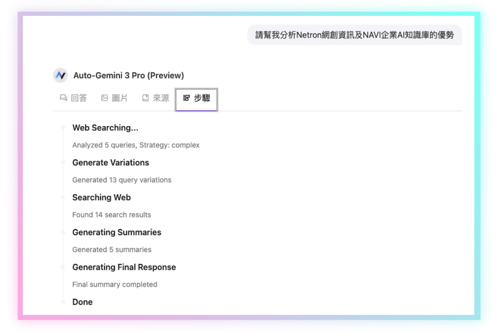 Powered by Deep Research, enabling users to move from Q&A to professional reports quickly, improving decision-making efficiency. -